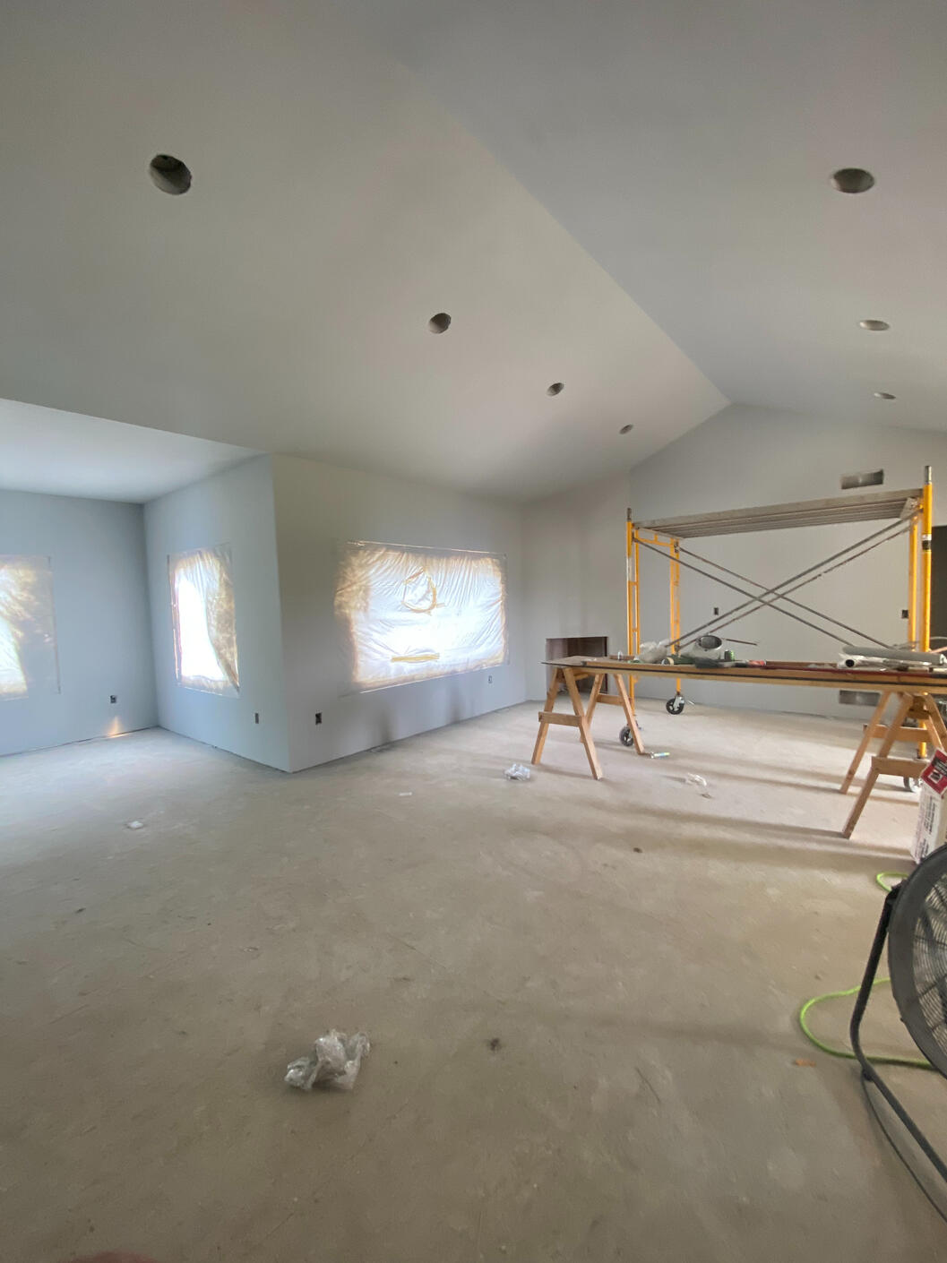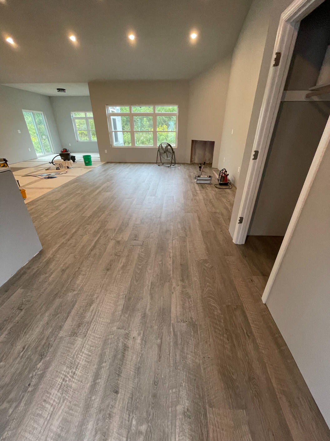 This project involved interior finishing for a newly built home, including full spray application of walls and ceilings and glue-down luxury vinyl plank installation throughout the residence.Spray application ensured an even, professional finish across all interior surfaces. Flooring work included subfloor preparation, layout planning, and precision installation of glue-down vinyl plank across all living spaces for a durable, seamless result.