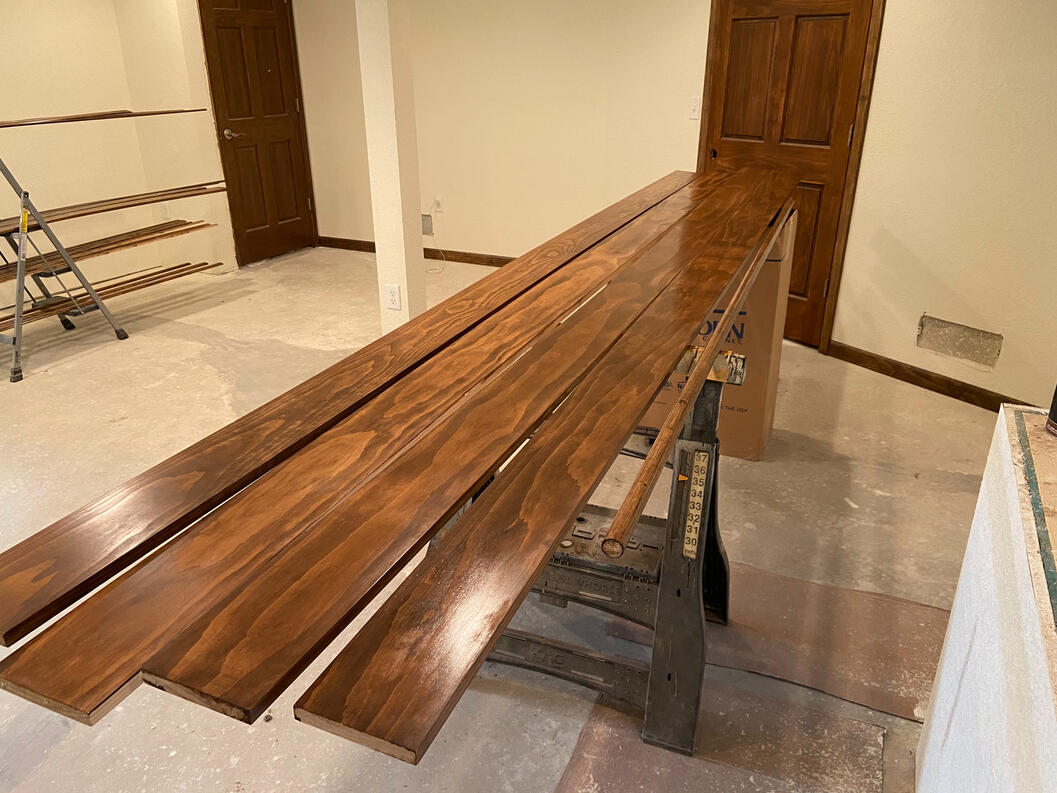 This project involved finishing newly installed baseboards, door trim, window casing, and interior doors through a full sanding and stain application process. Each component was carefully prepped and stained to achieve a consistent, cohesive tone throughout the space.